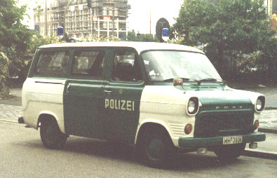 Kleinbusse wie dieser Ford Transit werden bei der Polizei in großen Mengen benötigt. Sie können dem reinen Personentransport dienen oder aber - mit Sonderausstattung - auch als Verkehrsunfallaufnahmewagen oder in anderer Funktion genutzt werden. Die Aufnahme entstand 1986.